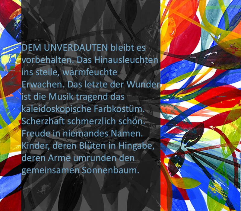 Ich will helfen, das zu tun, was die Friedliebenden zu tun versuchen für eine bessere Welt, ein Teil davon sein in Kunst. Alles möge geschehen, was gesund macht. Alles möge erwachen in Frieden.